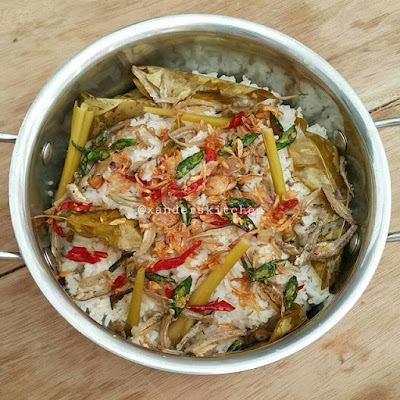 Setelah nasi matang, sajikan nasi dg ditaburi bawang goreng dan teri